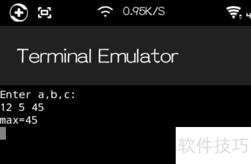 5、 运行后将跳转至终端模拟器窗口,通过软键盘输入内容并按回车键,即可执行代码,具体操作所示。