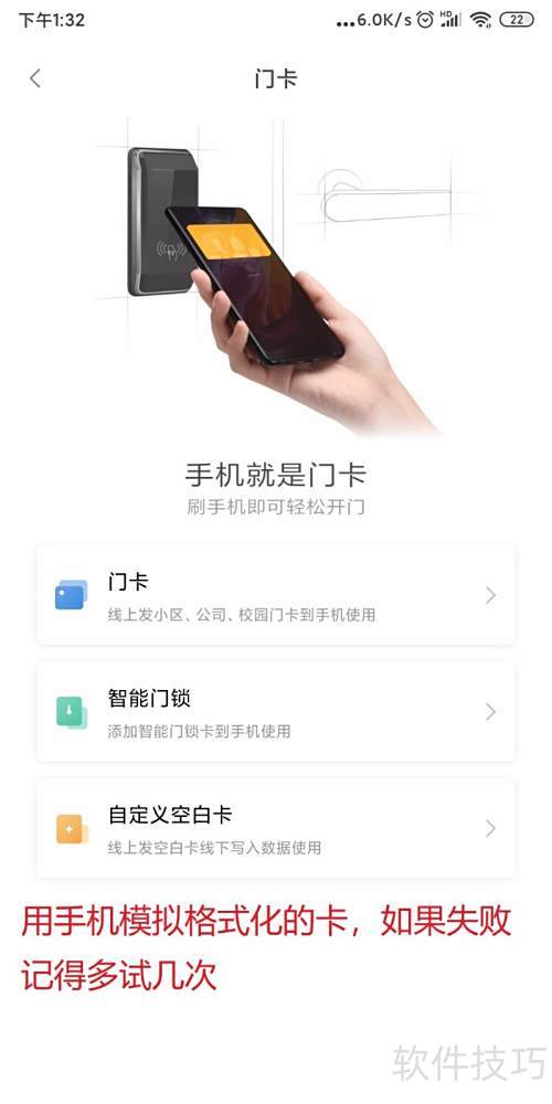 5、 使用手机或手环的门卡模拟功能,复制已格式化的母卡信息。