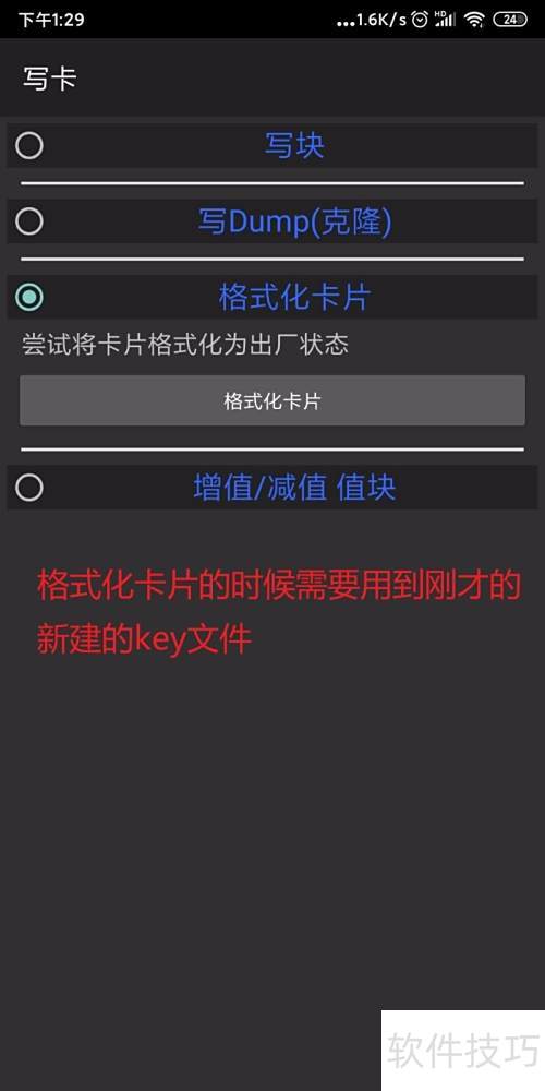4、 获取key文件后,通过mct加载该文件,读取并保存母卡的加密信息,随后使用mct对母卡进行格式化操作。