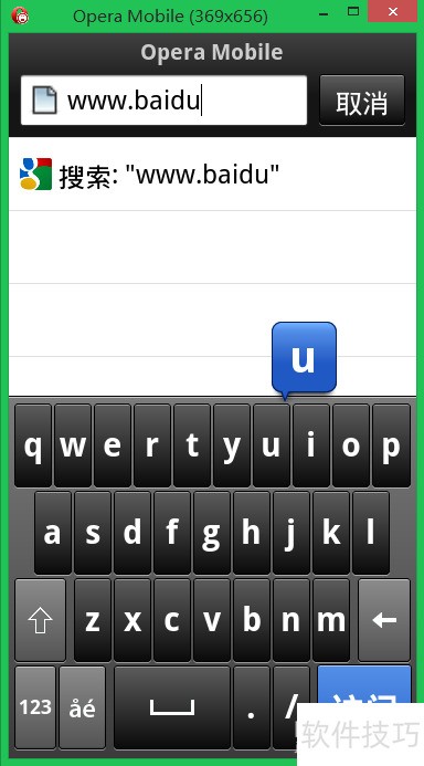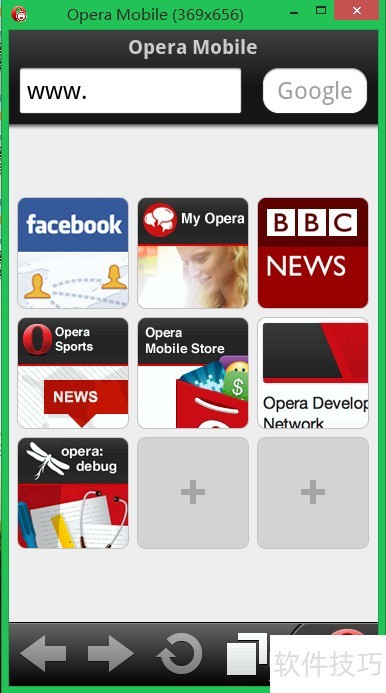 4、 接着打开在电脑上运行的Opera Mobile,你可用鼠标模拟手指操作,像在手机上一样流畅地浏览网页,体验移动端浏览器的便捷功能与界面布局。