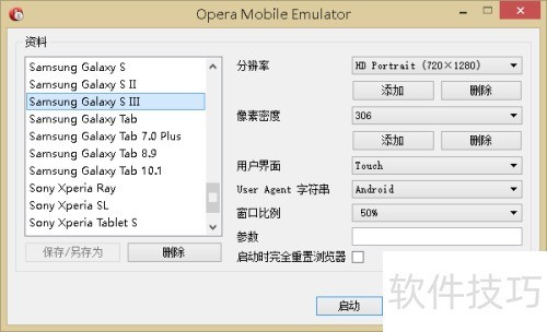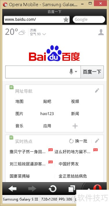 9、 顶部是地址与搜索栏,底部显示所选模拟器设置,包括分辨率、PPI、屏幕方向及缩放比例。