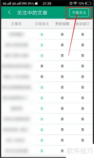 4、 点击右上角不再关注即可取消所有文章的关注。