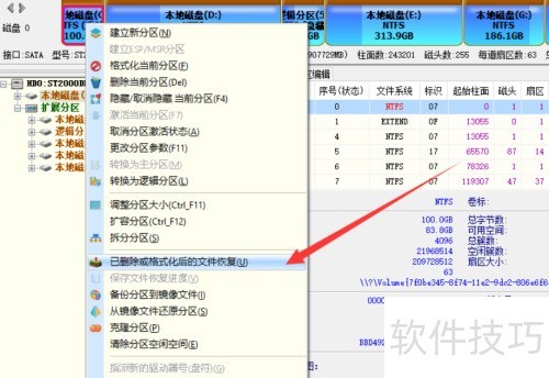 1、 打开DiskGenius软件,右键点击系统分区,在弹出菜单中选择恢复已删除或格式化的文件功能,按提示操作即可开始扫描与恢复。