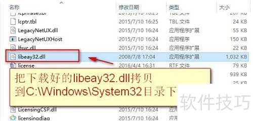 5、 将下载完成的libeay32.dll文件复制并粘贴至C盘WindowsSystem32文件夹中即可。