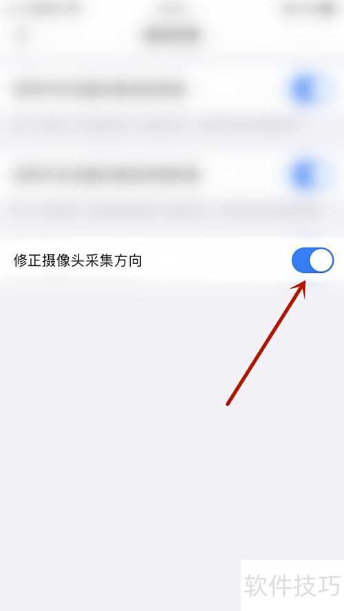 3、 在设置界面中点击修正摄像头方向选项旁的圆点