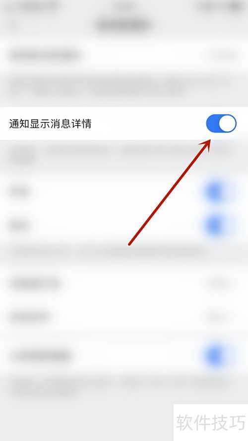 3、 在设置中找到通知选项,开启消息详情显示功能。