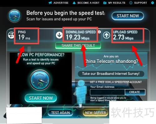 5、 许多人习惯用Speedtest测网速,例如我用20M电信宽带测试的结果所示。