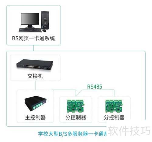 采用以太网+RS485混合组网的门禁系统,软件基于B/S架构,通过网页浏览器即可实现对整个系统的远程监控与管理。