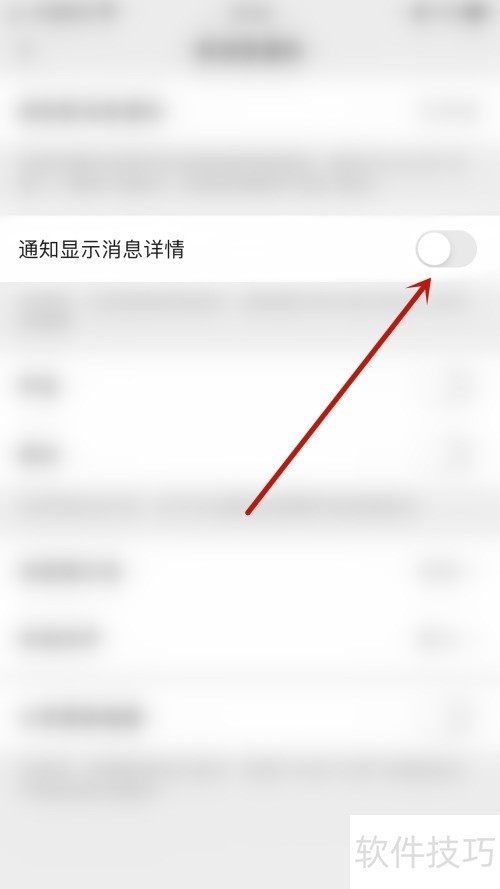 3、 在设置中找到并点击通知显示消息详情右侧的圆点。