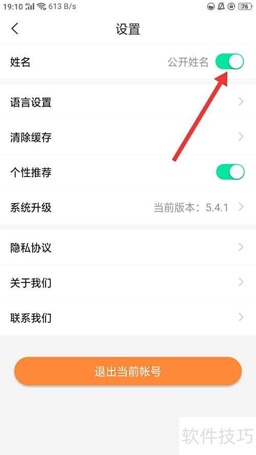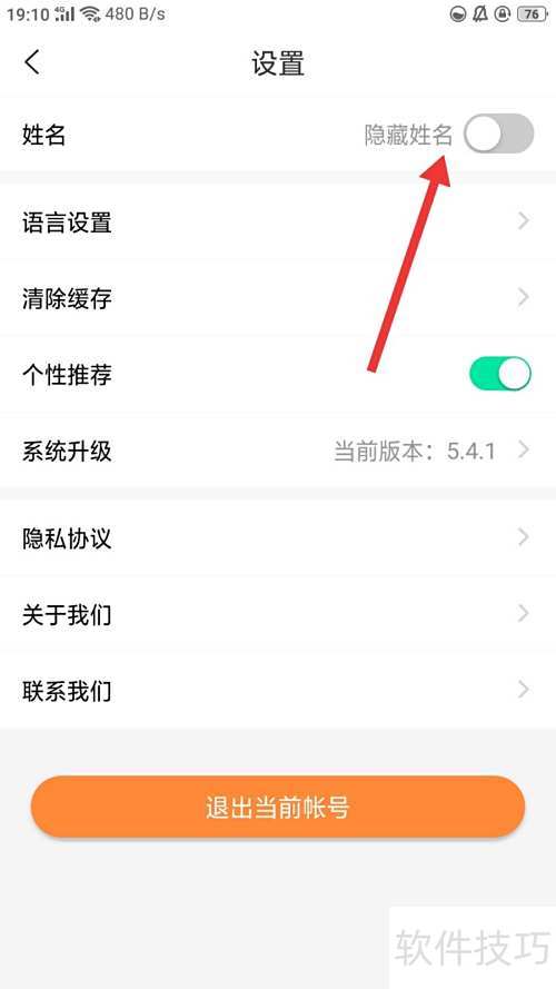 4、 进入设置后,将姓名后方的滑块滑至灰色状态即可。