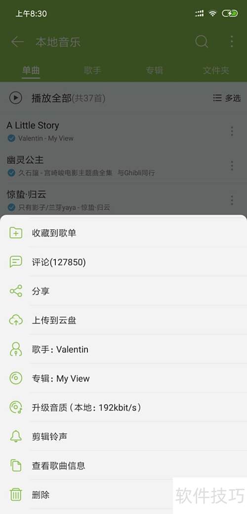 5、 点击音乐右侧的三个小点,选择剪辑铃声功能即可开始编辑。