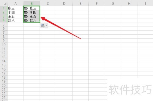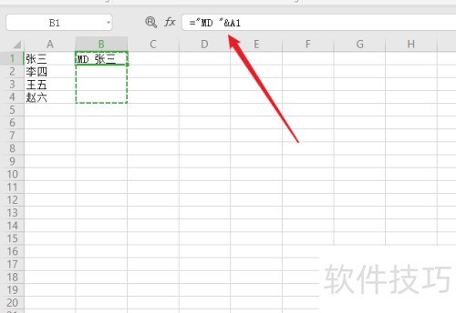 1、 在A列填写文件夹名称,于B1单元格输入公式=MD &A2。