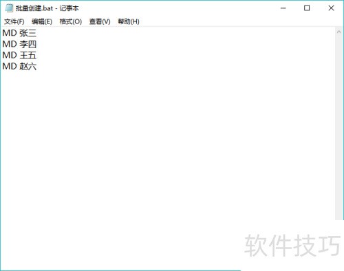 3、 复制生成的数据,新建一个名为批量创建.bat的文件。