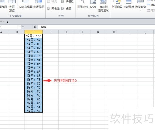 3、 结果显示,由于在中设置了三位数格式,系统自动为不足三位的数字前补零。若不希望补零,可将格式改为,即减少一位零,如此处理后效果二所示。