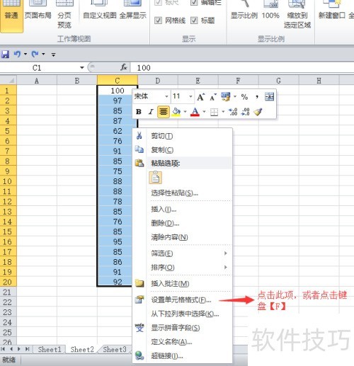 1、 选中数据后右键点击,按F键或选择设置单元格格式进行操作。