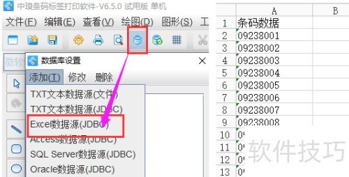 1、 如何将Excel中的条码数据批量转换为Code32条码?可通过条码软件的数据库导入功能,将Excel数据导入后批量生成Code32条码,操作简便高效,具体步骤如下。