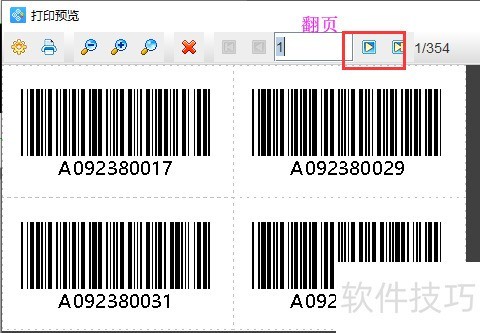 5、 在条码软件中进行打印预览,可查看批量生成的Code32条码,通过翻页能逐一核对从Excel导入的数据条数,导入多少条数据即可生成对应数量的条码。