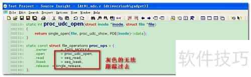 9、 工程创建完成后需检查代码,此时函数显示为黑色,无法追踪。这是因工程未同步映射所致,接下来应进行工程文件的同步操作。