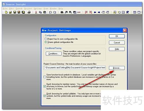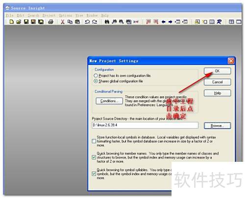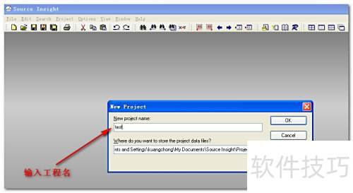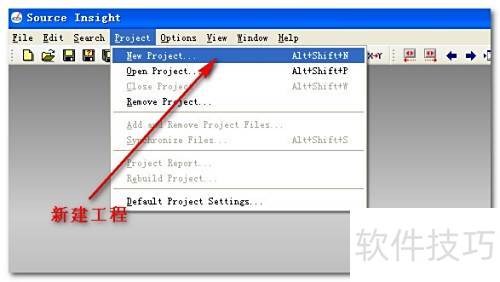 5、 启动Source Insight,选择项目菜单中的新建项目选项来创建工程,具体操作所示。
