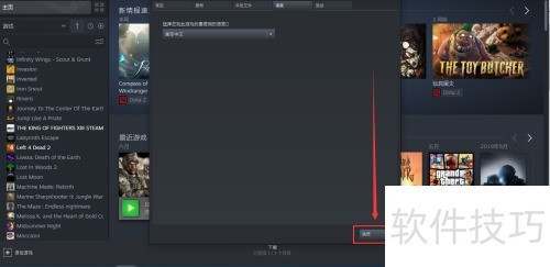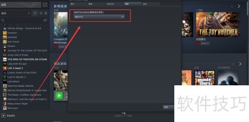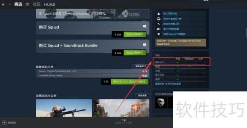 1、 在电脑桌面打开Steam客户端,进入Squad游戏设置界面,选择语言选项并更改为中文即可完成设置。