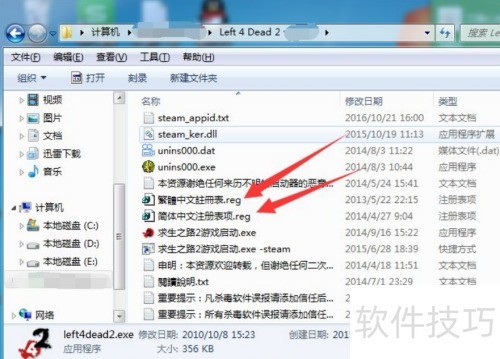 1、 可在网上查找求生之路2的中文注册表,部分贴吧资源下载的版本已自带中文注册表。