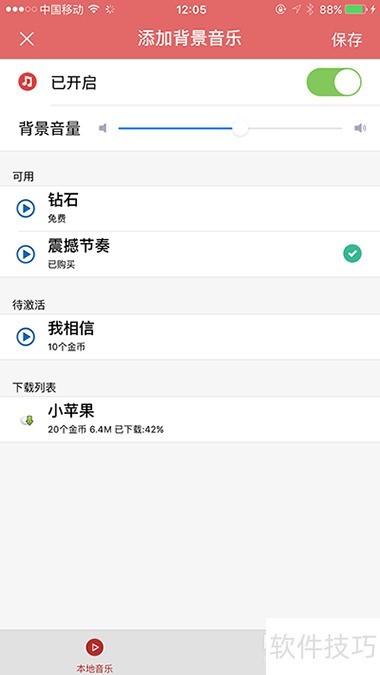 4、 合成后可为音频添加小苹果背景音乐,是店铺促销的理想选择。
