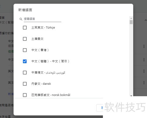 2、 下滑至底部,展开高级选项,进入语言设置,添加新语言,选择简体中文并确认保存。