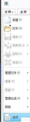 2、 点击文件菜单中的选项,打开Creo配置文件,操作所示。