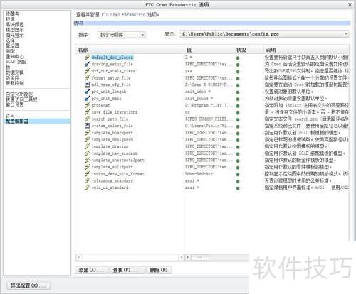 4、 进入第二步后,先确认Config文件的存储路径,找到该位置后,使用记事本打开此文件,在文件末尾另起一行输入creo_less_restrictive_names yes并保存即可完成修改。
