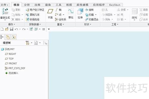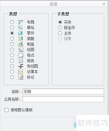 1、 双击启动Creo,选择文件菜单中的新建选项,创建一个空白文档。