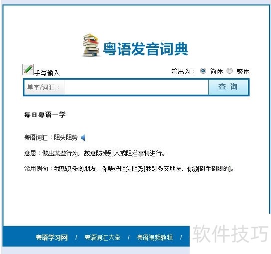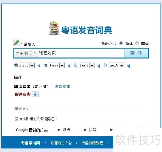 2、 想知道文字的粤语读音,可使用粤语发音词典这一工具,只需在百度搜索粤语发音词典即可找到相关资源进行查询。