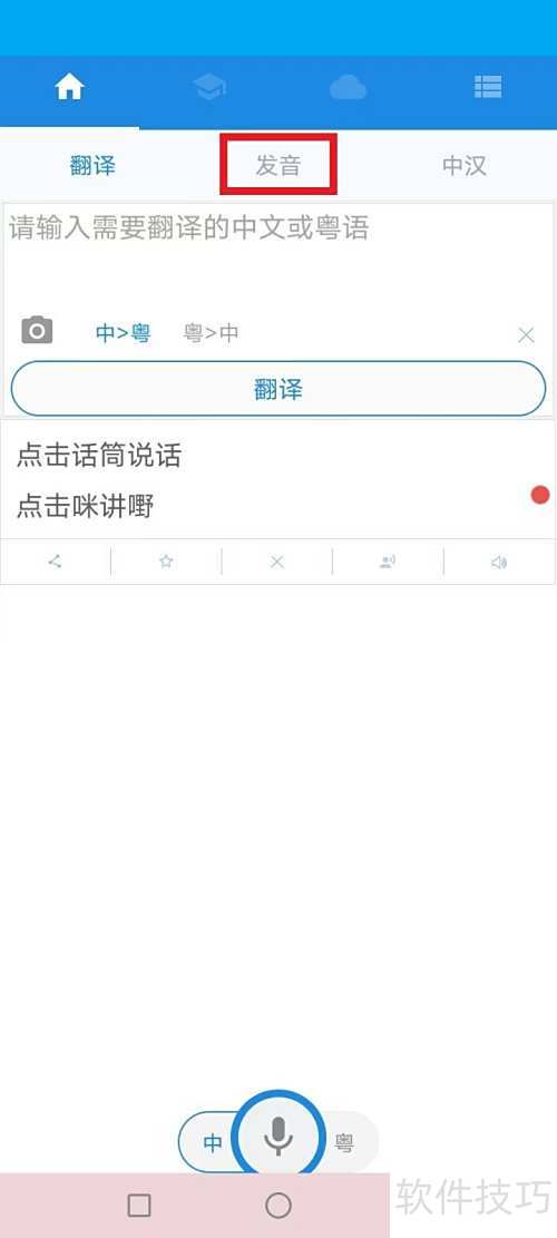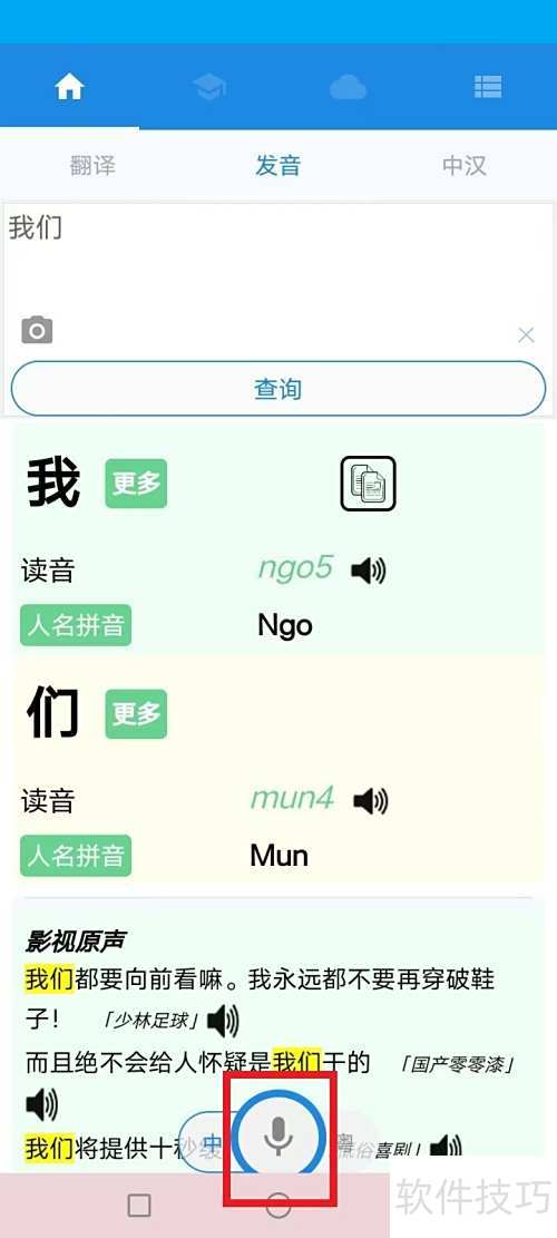 打开手机粤语发音软件,输入文字查读音,即可实现词典功能。