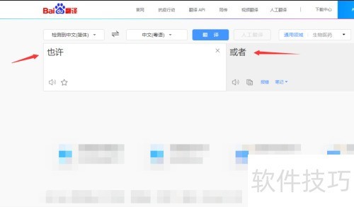 4、 在左框输入也许,右框便显示(或者),没错,粤语作为方言有其独特表达方式,并非仅靠发音就能体现。