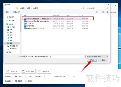 4、 进入界面后点击中间添加文件,选择需转换版本的CAD文件并打开。