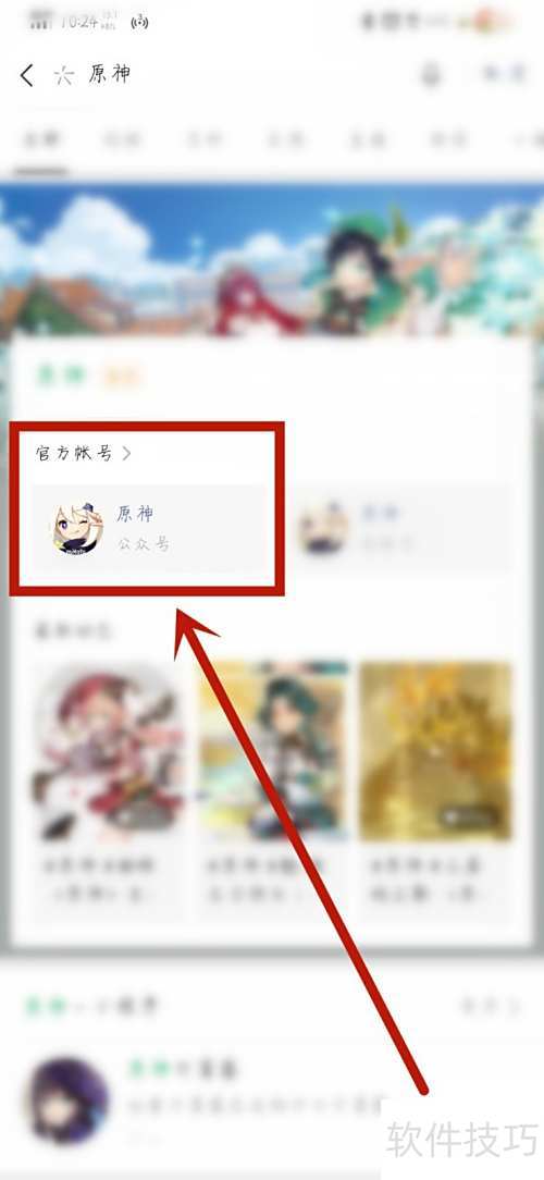 3、 在搜索页找到官方账号并点击原神公众号。