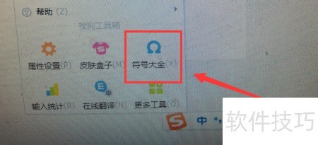 3、 在搜狗输入法菜单中选择符号大全。