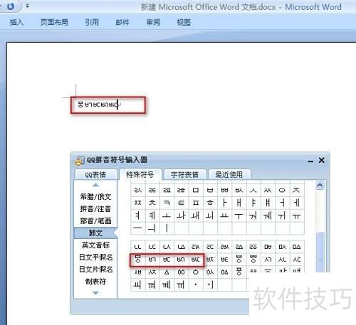 4、 第四步,打开特殊符号窗口,选择韩文选项