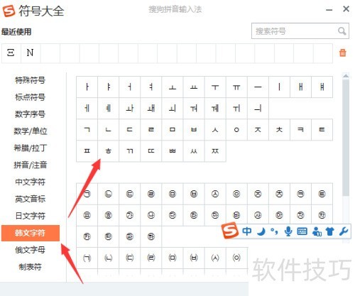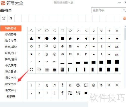 5、 符号大全中包含韩文字符,查找后即可输入韩文。