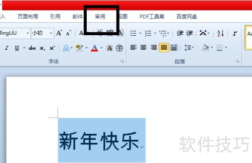 2、 点击顶部审阅,所示