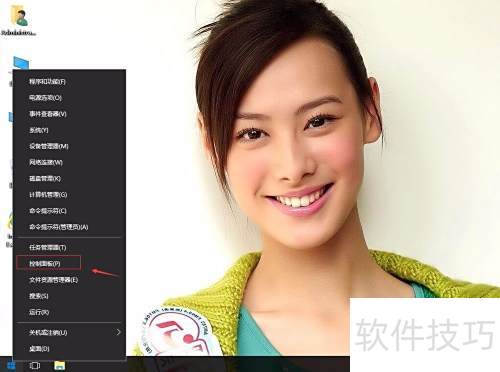 1、 在Windows 10桌面,右键点击开始菜单选择控制面板。