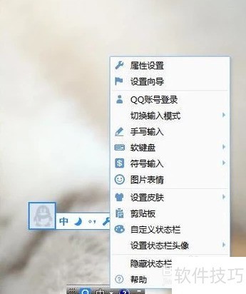 1、 没有输入法的用户可先下载安装QQ输入法,切换至该输入法后,点击中字旁带倒三角图标的选项即可。