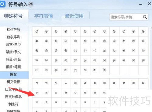 QQ输入法中切换至韩文模式即可输入,或通过特殊字符面板选择韩文字母进行输入。