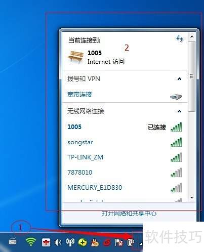 1、 启动电脑后,在任务栏中找到无线网络图标进行连接。