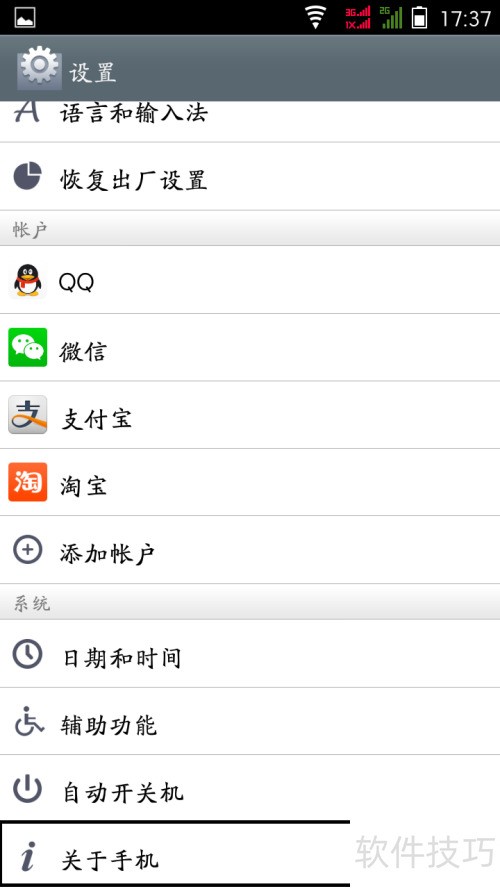 3、 点击关于手机选项