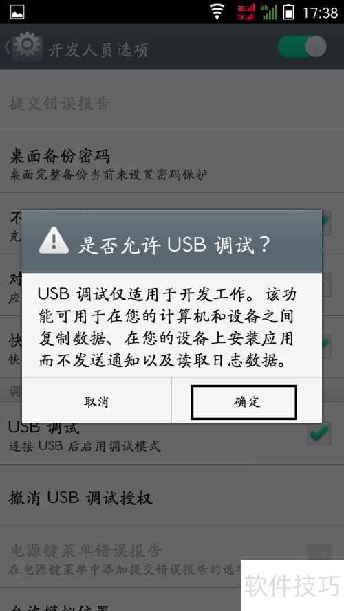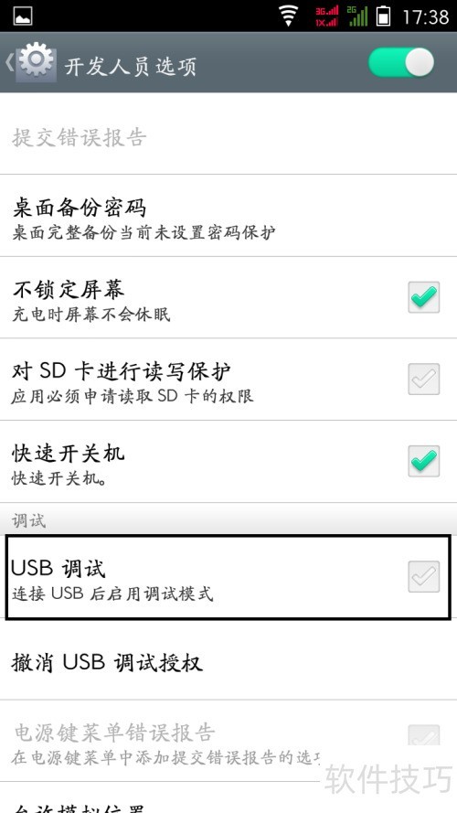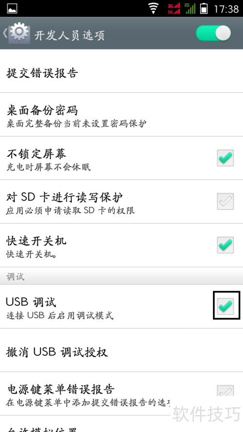 7、 勾选USB调试选项