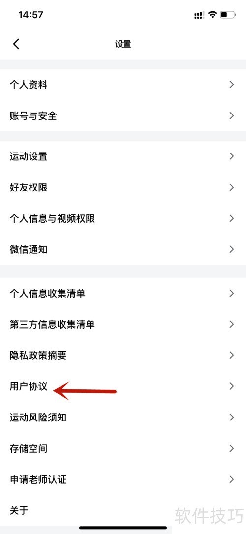 6、 在天天跳绳应用内,进入设置找到用户协议点击即可。