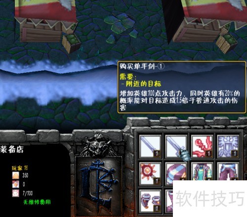 2、 开局优先刷怪升级,近战选择单手或双手剑,远程只需购买法师职业的魔杖即可。