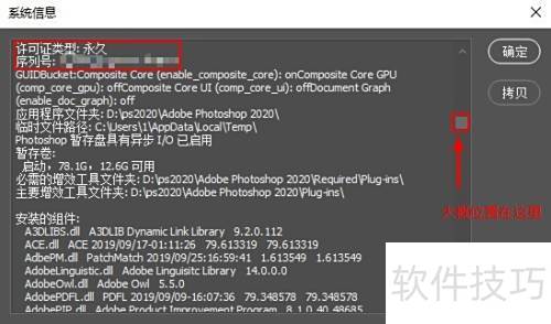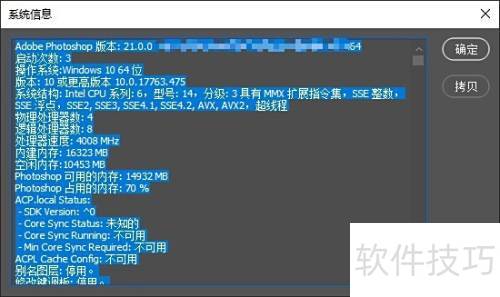 4、 弹出窗口中展示了电脑及PS软件的相关信息。