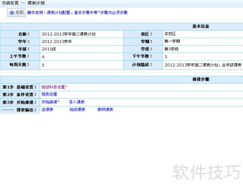 6、 使用此功能需确保课程具备上课地点和授课教师。学生若要查看课表,所涉及的教学班必须与课表计划中的学年、学期、学段信息匹配。教学班数据既可通过排班管理自动生成,也可在基础资料下的课程与教学管理模块中手动添加。