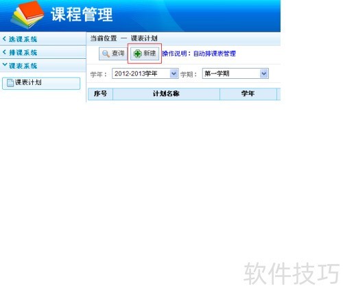 10、 在课程计划页面点击新建按钮,即可添加新课表计划,操作所示。